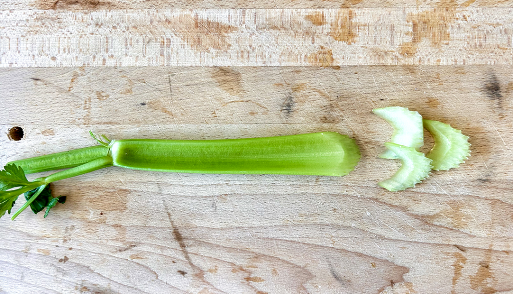 - À feu vif, faire revenir les morceaux de céleri-branche en remuant 1 à 2 minutes